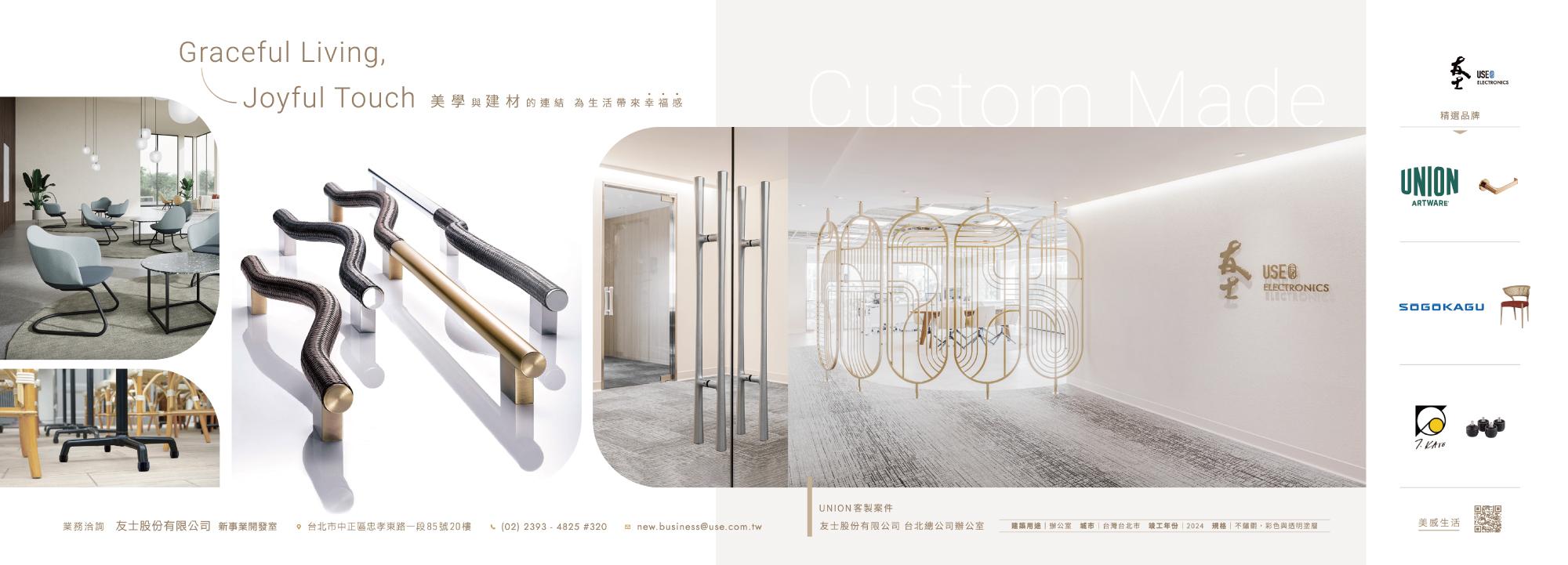 友士台北總公司亦同步展示UNION多款門把手與門用五金產品等,並提供結合空間優化諮詢服務,歡迎業界預約參觀與洽詢。了解更多UNION、SOGOKAGU相合家具製作所、T.KATO產品介紹,歡迎至品牌網頁友士美感生活。